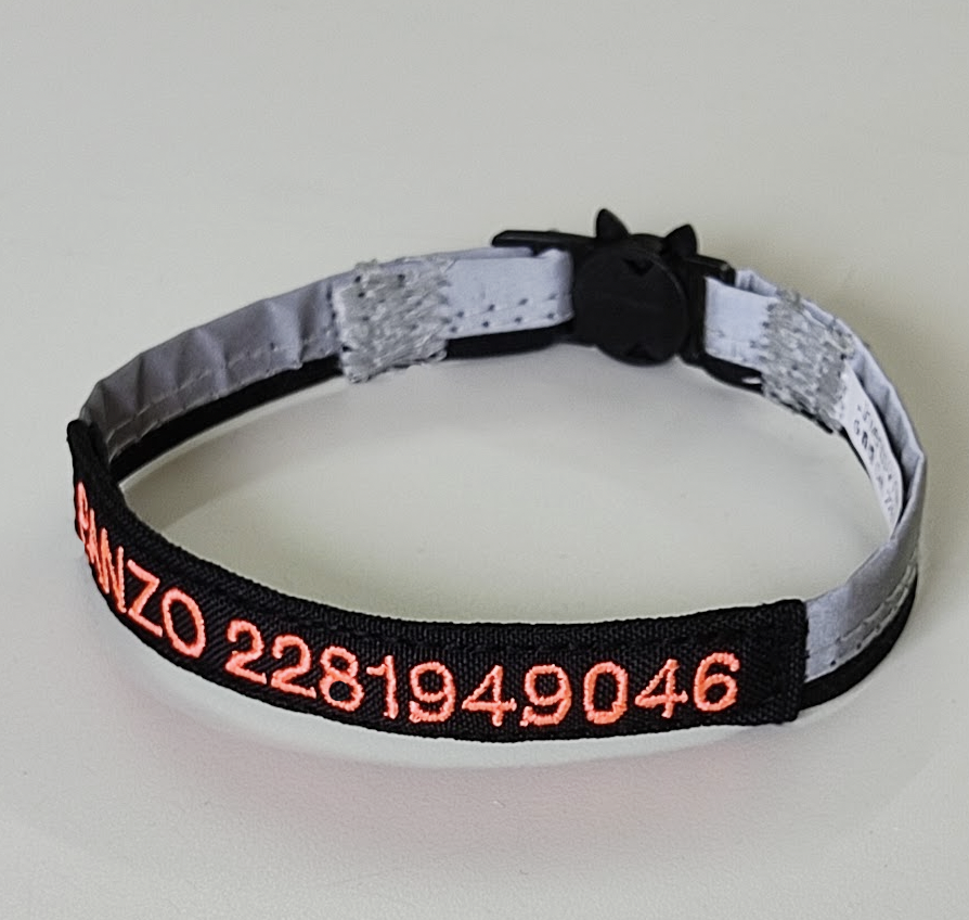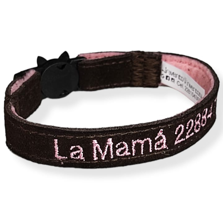 Nuestros collares personalizados para gatos brindan identificación segura y personalizada, con espacio para bordar el nombre y contacto del dueño. SON LOS ÚNICOS EN EL MERCADO, ya que hemos sido ¡nosotras las creadoras!