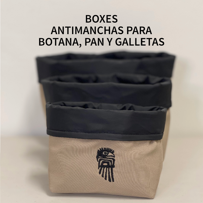 - Boxes antimancha para botana, panes y galletas. Super prácticos pues evita que el interior se ensucie de grasa, azúcar, mermeladas, etc.