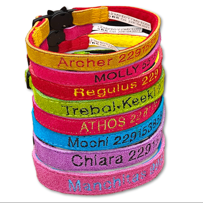 No existen otros en el mercado, pues fue inventoinventos.com quien los creó. Collares personalizados para gatos, hechos a la medida.