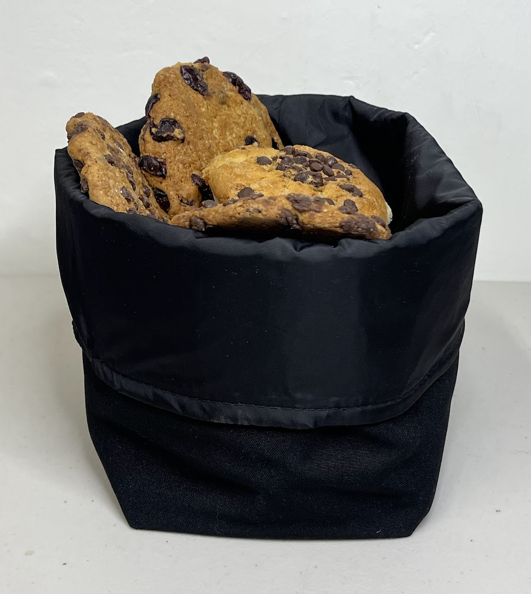Erika se dio a la tarea de inventar un box maravilloso, funcional y estético, con un forro antimanchas que evita que se ensucie con azúcar, mermelada, grasa, chile en polvo o algún otro ingrediente que generalmente ensucia los textiles.