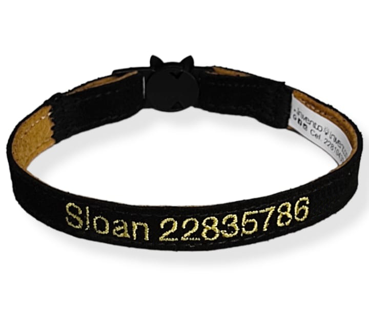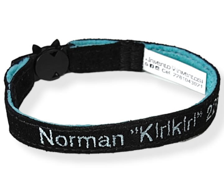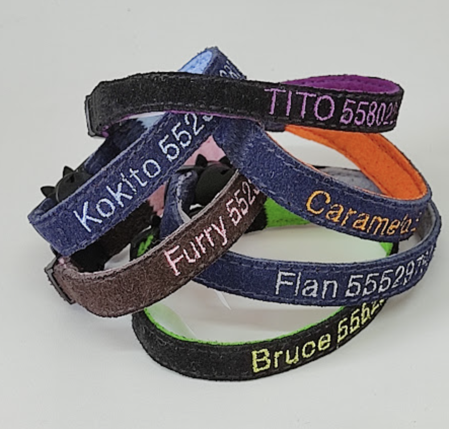 Collar ÚNICO en el mercado hecho especialmente para gatos: personalizado con datos de la mascota, teléfono del dueño, ancho de 1.3 cm. que evita que le estorben en el cuello y un broche ESPECIAL que se abre si el gato se atora. Esto evita ahorcamientos.