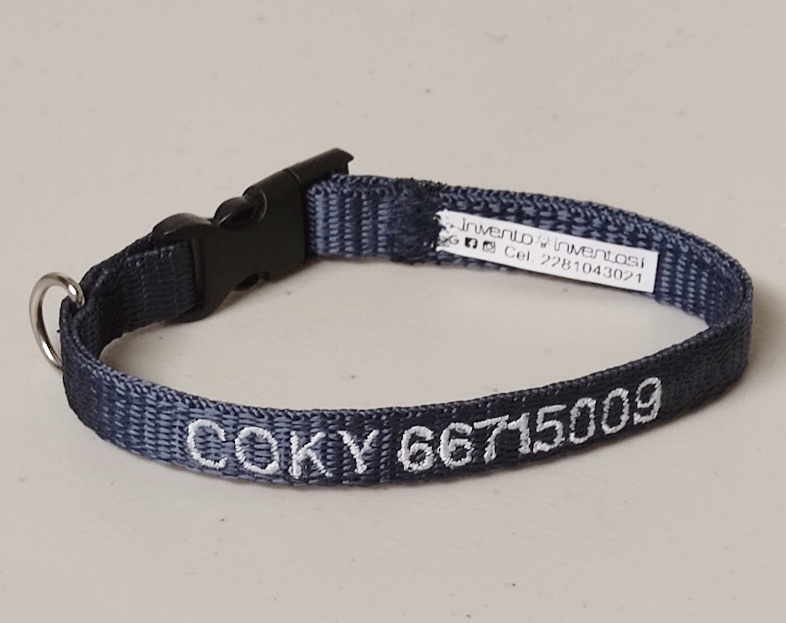 Ésta es una innovación de Invento Inventos a raíz de la necesidad de mantener a sus mascotas cuidadas y dejar de gastar en plaquitas inútiles que se pierden o raspan borrando los datos anotados en ellas.